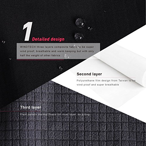 • A THREE-LAYER COMPOSITE STRETCHY FABRIC KNIT MAKES YOU WARM ,BREATHABLE -This jacket is constructed using the latest wind tech technology.The internal layer is thermal-lined with a fleece interior, for warmth retention with a cozy finish. Excellent heat retention capabilities for sufficient warmth in mild wintry use( between -5?5 centigrade) ,So you don't need to wear a lot of clothes in it, even in cold winter;The middle layer consists of a wind-proof and breathable material