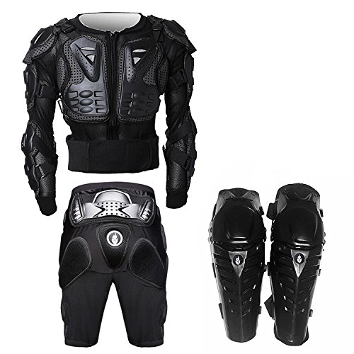 BC201 Mens Womens Black Motorcycle Clothing Shatter-Resistant including Cycling Jacket,Cycling Pants,Cycling Kneelet 3 Parts Cycling Accesories For Outdoor Activity,Available Size S Choose