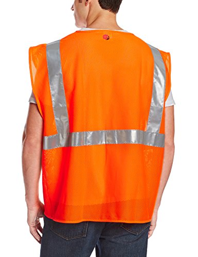 Hook-and-loop front closure. Silver bead reflective tape. 360 degree visibility with reflective tape. 100 % polyester. Machine washable. Meets ANSI/ISEA Z107-2004 Class 2 Requirements.