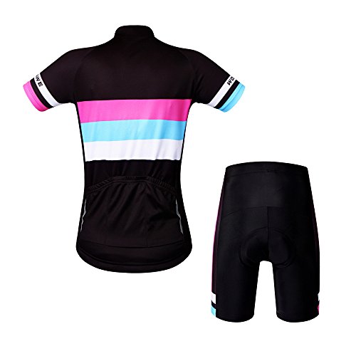 WOSAWE Women Short Sleeve Cycling Jersey and Shorts Suit, ColorShine, Size L