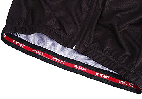 - The collar label adopt heat transfer printing, it is more comfortable to wear,Hem with WOSAWE logo silicone band, can provent skin allergy and the cloth upglide during riding very well.